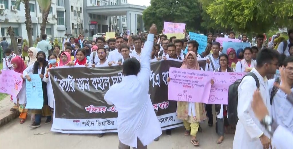 সমাবেশ করেছেন মেডিকেল কলেজের শিক্ষার্থীরা।
