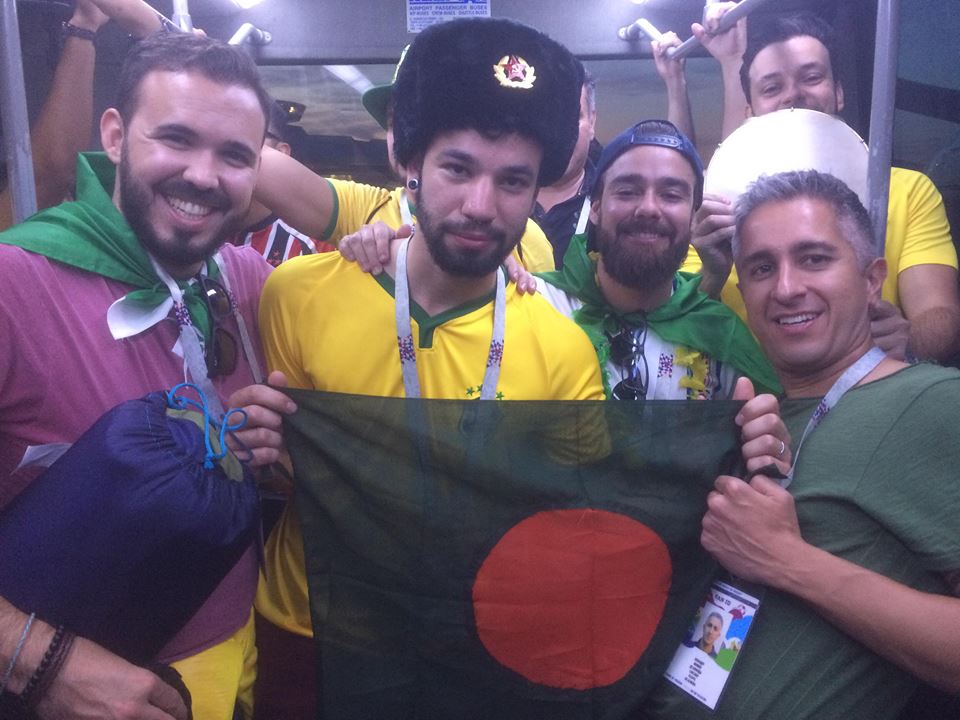 পথে পথে ব্রাজিলিয়দের সাথে দেখা। নিজ দেশের ফুটবল টিমের বিখ্যাত হলুদ জার্সি, হলুদ-সবুজের বাহারী টুপি ও  পতাকা গায়ে শহরে ঘুরছে তারা। কেউ কেউ পথের ধারের খাবারের দোকানে ভিড় করছেন। এই পথেই এক খাবারের রেঁস্তোরায় আবারও দেখা নেইমাররুপী সেই ওয়ালেস ও তার দলের সাথে। আমাদের দেখে তার মুখের হাসি চওরা হলো। ‘হ্যালো বাংলাদেশ’ বলে কাছে এসে হাত মিলালো। এবার তার হাতে আমাদের গৌরবের লাল সবুজের পতাকা তুলে দিলাম। সে ও তার দল বাংলাদেশের পতাকা নিয়ে ছবি তুললো। ওয়ালেস জানালো, বাংলাদেশে বাড়িতে বাড়িতে ব্রাজিল-আর্জেন্টিনার পতাকা ওড়ানোর তথ্য। বাংলাদেশের পতাকা নিয়ে সেই ঋণ শোধের চেয়ে শ্রদ্ধা ঝরে পরলো তাদের চোখেমুখে। এর মাঝে আবারও ফুটবলের আলাপ।