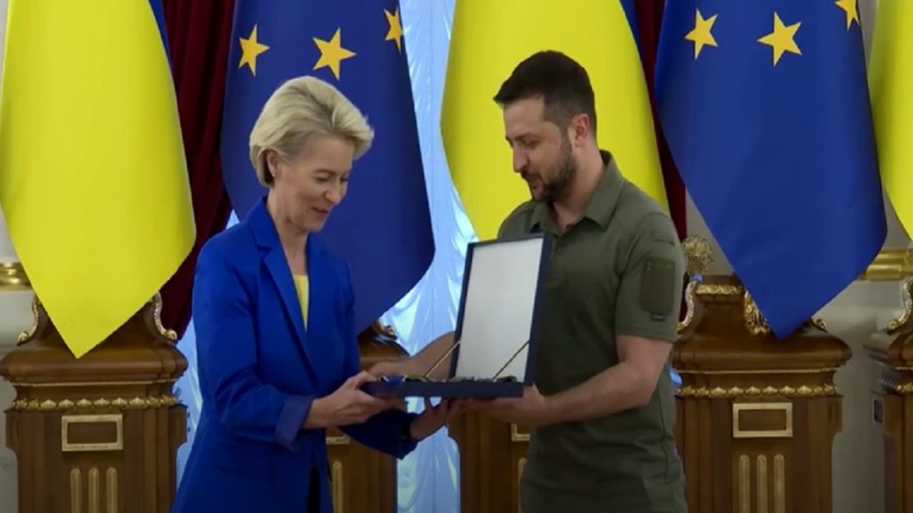 জেলেনস্কির সঙ্গে এক যৌথ সংবাদ বিজ্ঞপ্তিতে ইউরোপিয়ান কমিশনের চেয়ারম্যান বলেন, ইইউতে যোগ দেয়ার প্রক্রিয়া ভালোমতো চলছে। খুবই সন্তোষজনক অগ্রগতি হয়েছে ইউক্রেনের। এদিকে একই সংবাদ সম্মেলনে ইউক্রেনের প্রেসিডেন্ট ভোলদেমির জেলেনস্কি বলেন, তাদের বর্তমান প্রাধান্য হলো আকাশ প্রতিরক্ষা ব্যবস্থা। ইউক্রেনকে রক্ষা করতে এখন তাদের এ ব্যবস্থা প্রয়োজন।
