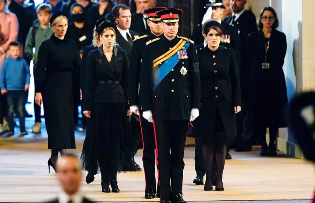 স্থানীয় সময় শনিবার (১৭ সেপ্টেম্বর) রানি দ্বিতীয় এলিজাবেথের প্রতি সম্মান জানান তার নাতি-নাতনিরা। রাজপরিবারের ইতিহাসে প্রথমবারের মতো কোনো রাজা বা রানির নাতি-নাতনিরা এই রাজকীয় রীতিতে অংশ নিলেন। প্রিন্স অব ওয়েলস উইলিয়াম ও ডিউক অব সাসেক্স হ্যারির নেতৃত্বে যোগ দেন তাদের ভাই-বোনরা।