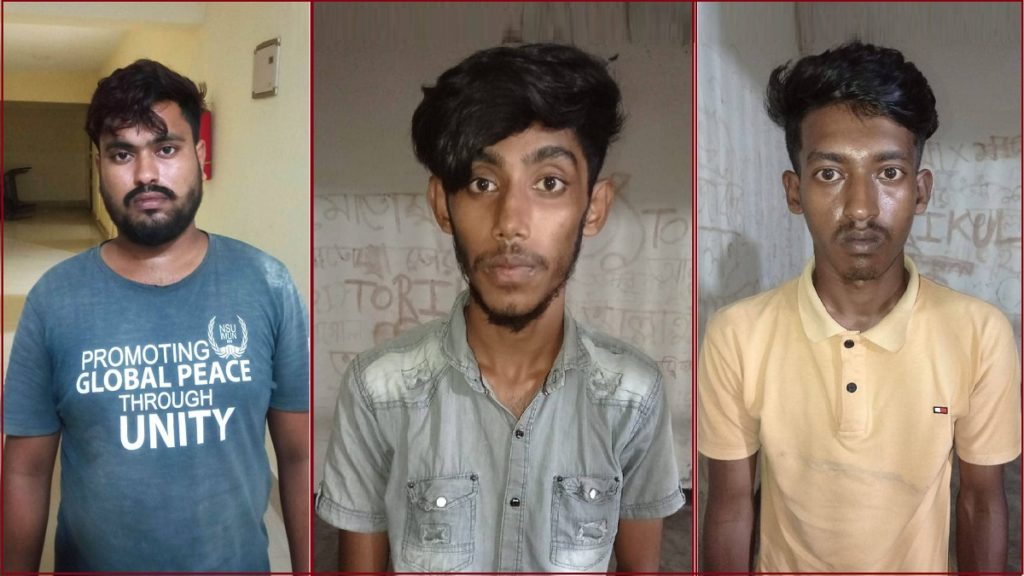 খুলনায় বন্ধুর সাথে ঘুরতে বেরিয়ে সংঘবদ্ধ ধর্ষণের শিকার হয়েছে নবম শ্রেণির এক ছাত্রী। বন্ধুকে বেঁধে রেখে তার সামনেই ওই কিশোরীকে ধর্ষণ করে তিনজন। সোমবার দুপুরে নগরীর খালিশপুর মুজগুন্নি আবাসিকের মদিনাবাদ এলাকার একটি ফাঁকা মাঠে ঘটনাটি ঘটে। মঙ্গলবার (১৯ সেপ্টেম্বর) ভোরে এলাকাবাসীর সহায়তায় পুলিশ ৩ ধর্ষককে গ্রেফতার করেছে।