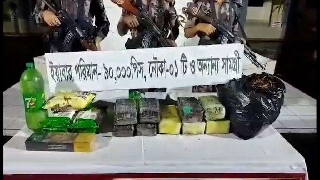 ৯০ হাজার ইয়াবার আনুমানিক মূল্য প্রায় দুই কোটি সত্তর লক্ষ ২৮ হাজার টাকার বেশি। এ সময় ১ প্যাকেট রিচ কফি, বার্মিজ সিগারেট, শুটকিসহ বেশকিছু পণ্য জব্দ করা হয়।