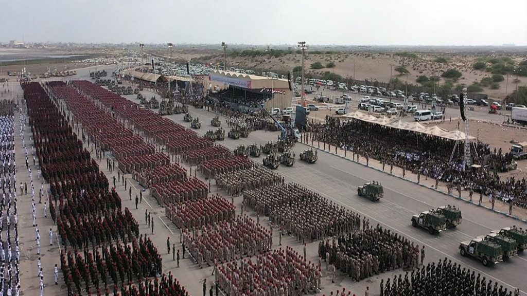 বৃহস্পতিবার (২২ সেপ্টেম্বর) অনুষ্ঠিত এ প্যারেডে অংশ নেয়, সেনাবাহিনী, নৌবাহিনী এবং বিমান বাহিনীর অন্তত ৩৫ হাজার সদস্য। বিভিন্ন ধরণের সাঁজোয়া যান, রকেট এবং ক্ষেপণাস্ত্র নিয়ে প্রদক্ষিণ করা হয় প্যারেড গ্রাউন্ড।