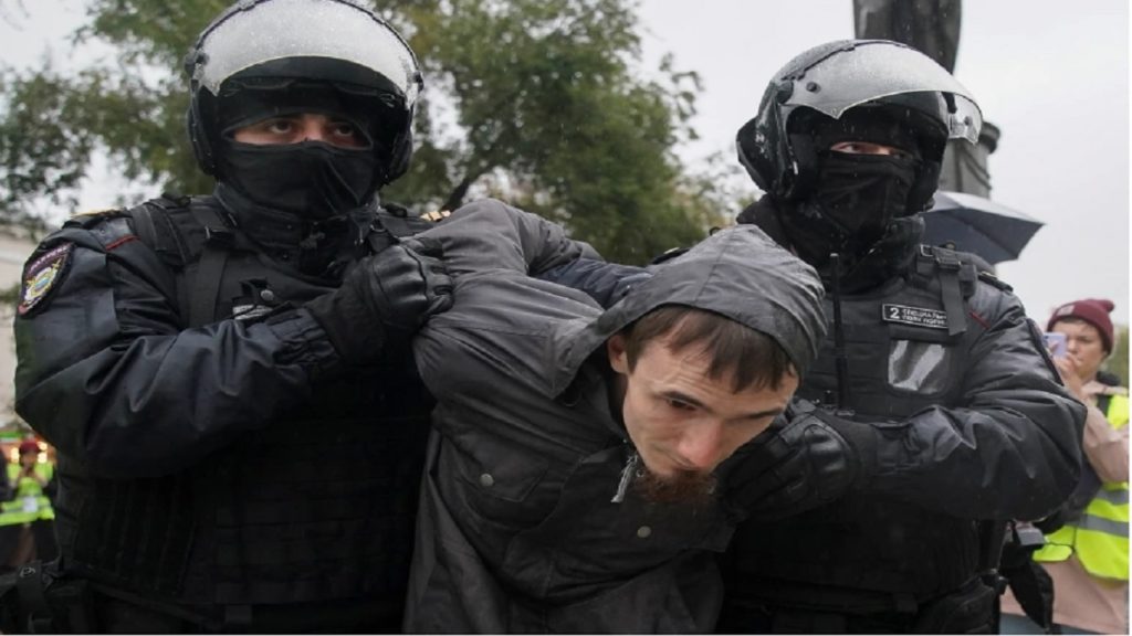 মস্কো থেকে সেন্ট পিটার্সবাগ। গোটা রাশিয়ায় চলছে পুতিন বিরোধী বিক্ষোভ-প্রতিবাদ। যুদ্ধে অতিরিক্ত সেনা মোতায়েন বা দখলকৃত অঞ্চলগুলোর গণভোটে ক্রেমলিনের সমর্থন বন্ধে বিতরণ করা হচ্ছে লিফলেটও। যে অপরাধে শুধু শনিবারই গ্রেফতার হয়েছেন ৭ শতাধিক রুশ নাগরিক। তাদের বিরুদ্ধে রাষ্ট্রদ্রোহিতা অথবা কর্তব্যে অবহেলার অভিযোগে করা হয় মামলা।