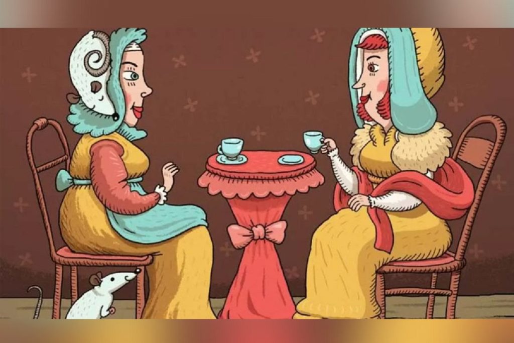 ছবিটিতে দেখা যাচ্ছে, দুজন নারী মুখোমুখি বসে চা খাচ্ছেন। তাদের পরনে শীতের পোশাক। সামনের টেবিলে চায়ের কাপ রাখা আছে। বাম দিকে যিনি বসে আছেন, তার পায়ের কাছেই বসে আছে একটি ইঁদুর। কিন্তু বলা হচ্ছে, একটি নয়, এই ছবিতে লুকিয়ে আছে আরও ইঁদুর। পাঁচ সেকেন্ডের মধ্যে সেগুলিকে খুঁজে বের করার চ্যালেঞ্জও ছুঁড়ে দেয়া হয়েছে দর্শক ও পাঠকের দিকে।
