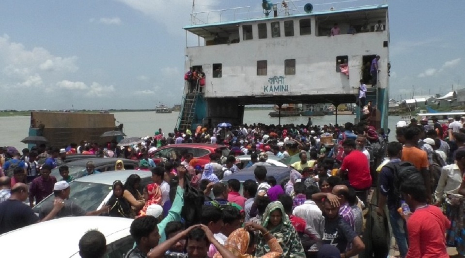 শিমুলিয়া-কাঁঠালবাড়ি ঘাটে রাজধানী ফেরা মানুষের প্রচণ্ড চাপ
