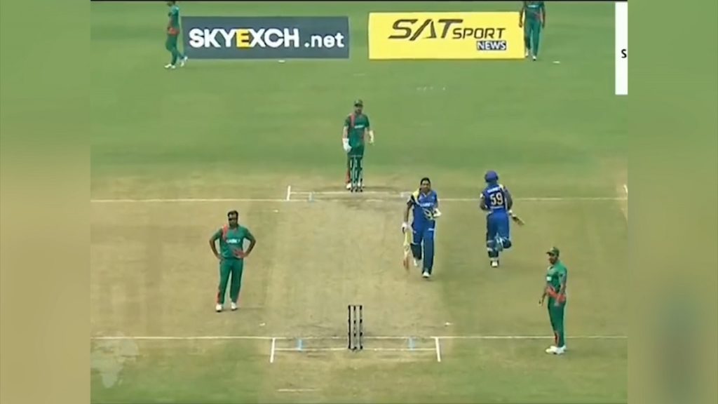 রাইপুরে শ্রীলঙ্কা লিজেন্ডসদের বিপক্ষে অষ্ঠম ওভারের চার নম্বর বল। যেখানে বোলার ছিলেন অলক কাপালি। ব্যাটার মাহেলা উধাওয়াত্তের শটে বলটা উইকেটকিপারের হাত ফসকে চার হতো হয়তো। কিন্তু ফিল্ডিংয়ের ভুলে তা চার না হলেও দৌড়ে চার রান আদায় করে নিয়েছেন মাহেলা ও তিলাকারত্নে দিলশান।