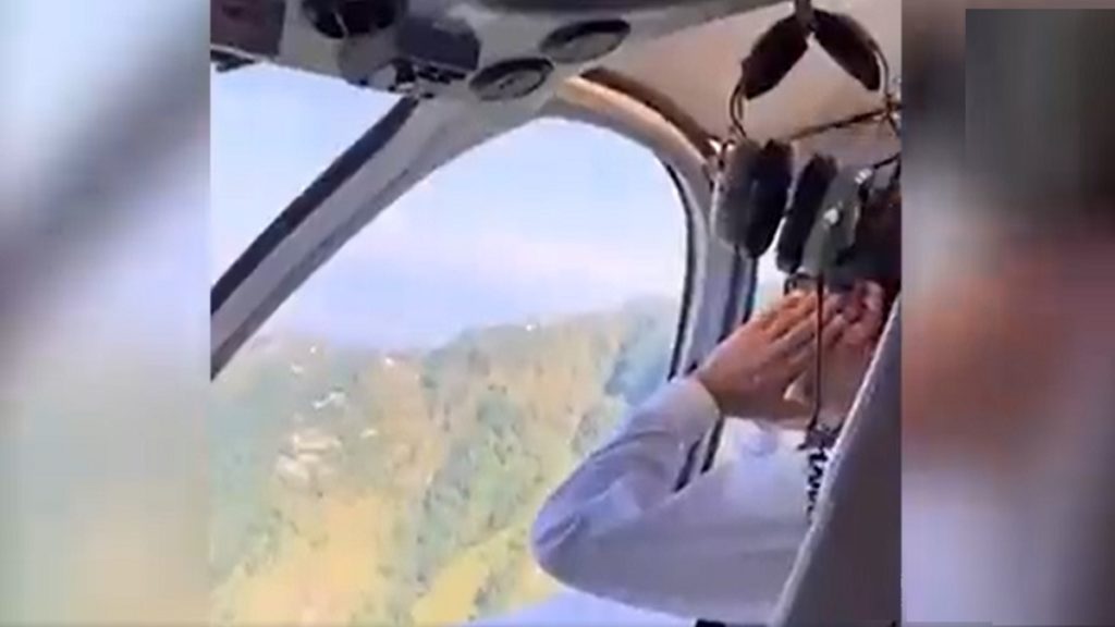 ওই অঞ্চলের পাহাড়ের ওপর দিয়ে হেলিকপ্টারে যাওয়ার সময় তিনি সামনের সিটে বসে নামাজ আদায় করেন। পেছন থেকে কেউ তা ভিডিও করে সোশ্যাল মিডিয়ায় ছেড়ে দেয়।