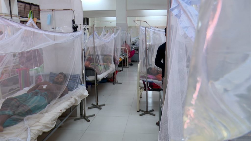 হাসপাতালে বাড়ছে রোগী। বাড়ছে স্বজন হারানোর হাহাকার। এক রোগী ভর্তি হয়েছিলেন মস্তিষ্ক সংক্রমণে। তাকে বাঁচানো যায়নি। শহীদ সোহরাওয়ার্দী মেডিকেল কলেজ হাসপাতালের সহযোগী অধ্যাপক ডা. সৈয়দ জাকির হোসাইন বলছেন, ডেঙ্গু আক্রান্ত অনেকে গুরুতর স্বাস্থ্য পরিস্থিতি নিয়ে হাসপাতালে ভর্তি হচ্ছে। হাসপাতালে দেখা গেলো, হাতে রক্ত জমা উপসর্গ নিয়ে ভর্তি হয়েছেন একজন রোগী। এই ধরনের উপসর্গ সচরাচর দেখা যায় না ডেঙ্গু রোগীদের ক্ষেত্রে।