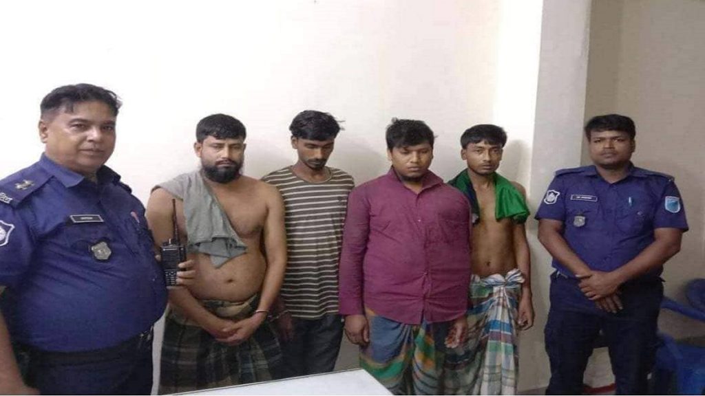 গ্রেফতারকৃতরা হলেন, নারায়ণগঞ্জের সোনারগাঁওয়ের সাদিপুর ইউনিয়নের চোত্রাপাশা এলাকার মৃত নুরুল ইসলামের ছেলে ইসরাফিল (৩৩), আব্দুল হকের ছেলে রুহুল আমিন (২০), মৃত লাল মিয়ার ছেলে বাবু (২৬) ও তালেব আলীর ছেলে খোকন ওরফে আলম (২৬)।