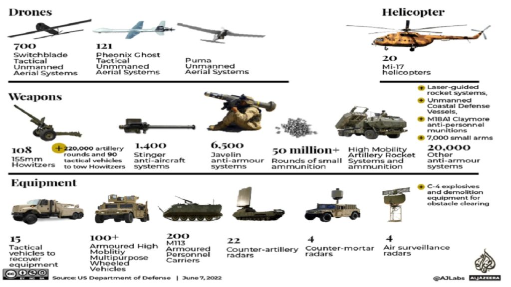 মার্কিন যুক্তরাষ্ট্র ইতোমধ্যে ইউক্রেনকে ২০টি উচ্চ গতিশীল আর্টিলারি রকেট সিস্টেম (হাইমারস) প্রদান করেছে এবং আরও ১৮টি দেবে বলে প্রতিশ্রুতি দিয়েছে।