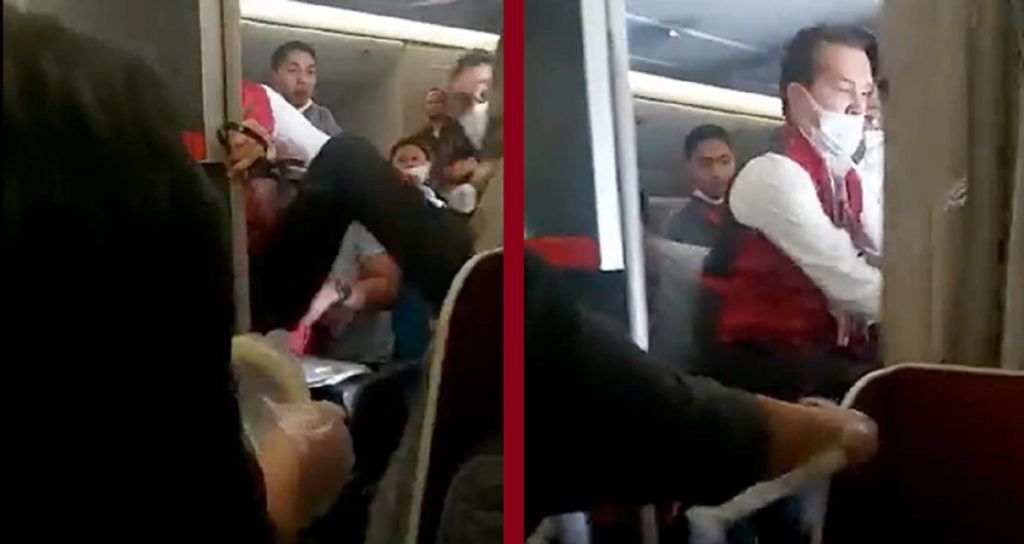 ভাইরাল ফুটেজে দেখা যাচ্ছে, একজন ব্যক্তি প্লাস্টিকের হাতকড়া হাতে একজন ফ্লাইট অ্যাটেনডেন্টকে ঘুষি মারছেন। হতবাক যাত্রী এবং অন্য বিমান সদস্যরা তখন আক্রান্ত ক্রুকে সাহায্য করতে এগিয়ে যান। অন্য একজন বিমানসদস্য ওই যাত্রীকে আসনে বসিয়ে দিতে গেলে তাকেও লাথি মারা হয়। পাল্টা লাথি মারেন ওই ক্রুও।