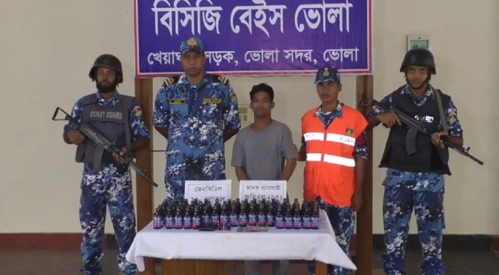 ভোলায় ফেন্সিডিল ও নগদ টাকাসহ মো. জহিরুল ইসলাম (২৫) নামে এক যুবককে আটক করেছে কোস্টগার্ডের সদস্যরা। এ সময় তার কাছ থেকে দুটি ব্যাগ ভর্তি ৯৮ পিস ফেন্সিডিল, দুটি মোবাইল ফোন ও নগদ ৪১৪ টাকা জব্দ করা হয়।