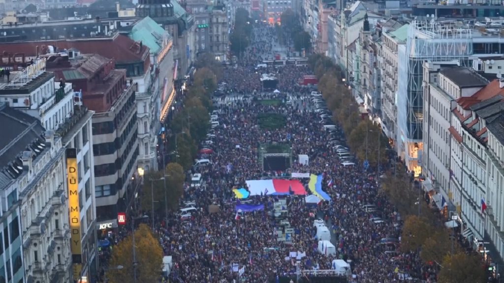‘মিলিয়ন মোমেন্টস ফর ডেমোক্র্যাসি’ গ্রুপের উদ্যোগে ছিলো এ আয়োজন। সেখানে অংশগ্রহণকারীরা বহন করেন ইউক্রেন এবং ইউরোপীয় ইউনিয়নের পতাকা। ভিডিও বার্তায় তাদের প্রতি কৃতজ্ঞতা জানান ইউক্রেনের ফার্স্ট লেডি ওলেনা জেলেনস্কা। বলেন, রুশ আগ্রাসনে ইতিহাসের কালো অধ্যায় দেখছে তার দেশ। মূলত চলমান যুদ্ধে ইউক্রেনকে ঢালাও সমর্থন দিচ্ছেন চেক প্রধানমন্ত্রী। যার বিরোধীতায় চলতি মাসেই ৩টি আন্দোলন হয় দেশটিতে।