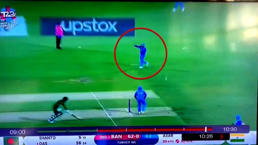 তখনও বৃষ্টির বাধা আসেনি। চলছিল লিটন শো। ঘটনাটা ৬ ওভার ২ বলের সময়। লিটনের ঠেলে দেয়া বল ডিপ পয়েন্ট থেকে আর্শদিপ ফেরত পাঠানোর আগেই দুইবার প্রান্ত বদল করেন ব্যাটাররা। কিন্তু বল কিপারের হাতে পৌঁছানোর আগেই পয়েন্টে দাঁড়িয়ে থাকা ভিরাট কোহলি করেন বল থ্রোয়ের ভঙ্গি। যা ক্রিকেটে একেবারেই অবৈধ।