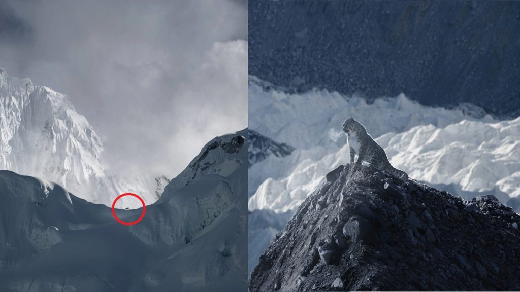 কিটিয়া পাওলোস্কির তোলা ছবিতে দেখা যায়, নেপালের হিমালয় পর্বতের খুম্বু হিমবাহের ‘ফ্যান্টম অ্যালি’ বা ‘ভূতের গলি’ হিমবাহের চূড়ায় বসে রয়েছে একটি ‘তুষার চিতা’। একই হিমবাহে এরকম আরও একটি ছবি তুলেছেন তিনি। তবে সেটি একটু ভিন্ন।