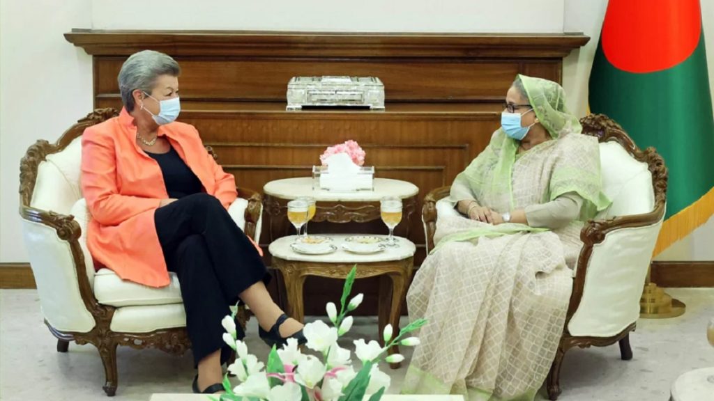 বৃহস্পতিবার (১০ নভেম্বর) দুপুরে প্রধানমন্ত্রী শেখ হাসিনার সঙ্গে সৌজন্য সাক্ষাৎ করে ইইউ এর পাঁচ সদস্যের একটি প্রতিনিধি দল। ইইউ এর প্রতিনিধি দলে নেতৃত্ব দেন জোটটির কমিশন ফর হোম অ্যাফেয়ার্স ইভা জোহানসন।