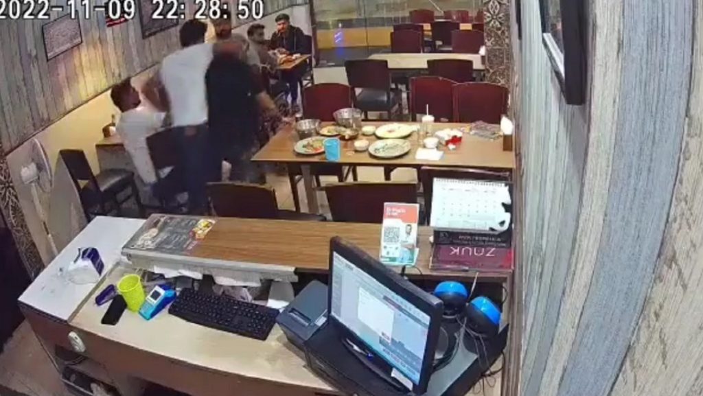 ভিডিওতে দেখা যায়, তাদের একজন উঠে গিয়ে ক্যাশ কাউন্টারে থাকা আলতাফকে ঘুষি মেরে টানতে টানতে খাবার টেবিল পর্যন্ত নিয়ে যান। পরে বাকি দুজনও যোগ দেন। একপর্যায়ে তারা ওয়েটারকে রেস্টুরেন্টের বাইরে নিয়ে যাওয়ার চেষ্টা করেন। এ সময় আশেপাশের লোকজন এগিয়ে গেলে হামলাকারী যুবকরা দ্রুত পালিয়ে যায়।
