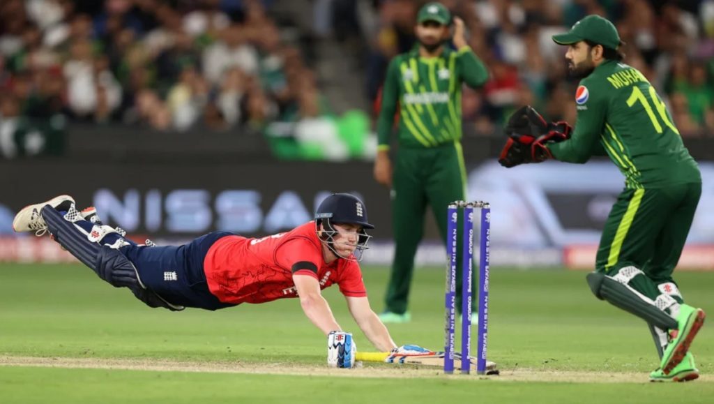 এর আগে, টস জিতে পাকিস্তান কে ব্যাটিংয়ের আমন্ত্রণ জানান ইংলিশ অধিনায়ক জস বাটলার। বাঁহাতি পেসার স্যাম কারেনের সুইং ও পেস বৈচিত্র্যের জবাব খুঁজে না পেয়ে ২০ ওভারে ৮ উইকেট হারিয়ে ইংল্যান্ডের সামনে ১৩৮ রানের মামুলি টার্গেট দেয় বাবর আজমের দল। ফাইনালের চাপ বিবেচনায় নিলে হয়তোবা অনিশ্চয়তার দেখা মিলবে মেলবোর্নে। তবে দেড়শোর বেশি পুঁজি গড়ার সম্ভাবনা জাগিয়েও ইংলিশদের চেপে ধরা বোলিং-ফিল্ডিংয়ে শেষ ৫ ওভারে মাত্র ৩১ রান তুলতে পেরেছে পাকিস্তান।