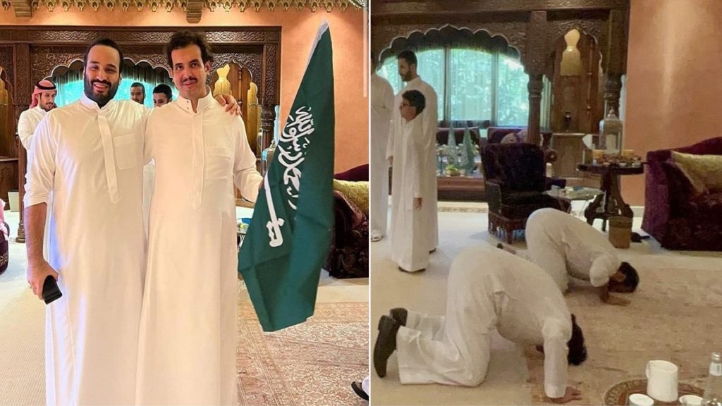 অন্য একটি ছবিতে দেখা যায়, আর্জেন্টিনা-সৌদি ম্যাচের শেষ মিনিটের বাঁশি বাজার পর মাটিতে সিজদায় লুটিয়ে পড়েন এ যুবরাজ। এ সময় তার পাশে অন্য একজনকেও সিজদা দিতে দেখা যায়।