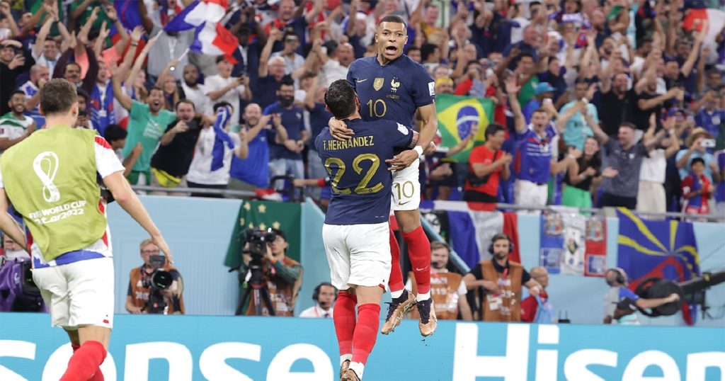 হাড্ডাহাড্ডি লড়াইয়ের আভাস পাওয়া যাচ্ছিল দ্বিতীয়ার্ধের শুরু থেকেই। ম্যাচের ৬১ মিনিটে থিও হার্নান্দেজের চমৎকার ক্রস থেকে বল পেয়ে প্লেসিং শটে ক্যাস্পার স্মাইকেলকে পরাস্ত করেন কিলিয়ান এমবাপ্পে। আক্রমণটি তৈরিতেও ছিলেন এমবাপ্পে। নিজেদের অর্ধে পাওয়ায় বল মাঠের বামপ্রান্তে লেফট ব্যাক থিও হার্নান্দেজের উদ্দেশে বাড়ান এই পিএসজি তারকা। দুইজনের ওয়ান-টু-ওয়ান থেকে নিজের ৩০ তম আন্তর্জাতিক গোল এবং বিশ্বকাপে ৬ষ্ঠ গোল করেন এমবাপ্পে।