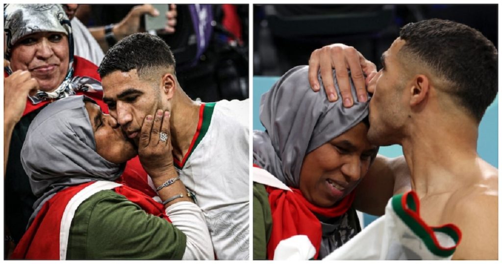 বিশ্বকাপ ইতিহাসের অন্যতম অঘটনের এই দিনে আল থুমামা স্টেডিয়ামে তৈরি হয় এক অভূতপূর্ব আবেশের। কয়েক হাজার মরোক্কান সমর্থক ফেটে পড়েন উল্লাসে। স্পোর্টস ব্রিফ’এ প্রকাশিত সেই ভিডিওতে দেখা যায়, আশরাফ হাকিমি তার আনন্দ ভাগ করে নিতে গ্যালারিতে মায়ের কাছে যান। ম্যাচের জার্সি উপহার দেন মাকে। আর, গর্ব ও আনন্দের সাথে মা জড়িয়ে ধরেন হাকিমিকে।