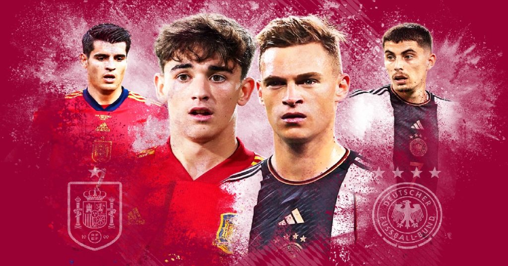 আল-খোরের আল বাইত স্টেডিয়ামে ডু অর ডাই ম্যাচে আজ স্পেনের মুখোমুখি হবে জার্মানি। বাংলাদেশ সময় রাত ১টায় শুরু হবে গ্রুপ ‘ই’ এর ম্যাচটি। এরই মদ্ধে শুরুর একাদশ ঘোষণা করেছে ফেভারিট স্পেন ও জার্মানি।