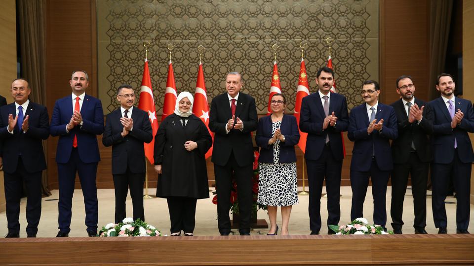 ১৬ সদস্যের এই মন্ত্রিপরিষদে ঠাঁই পেয়েছেন দেশটির সেনা প্রধান হুলুসি আকার। তাকে দেয়া হয়েছে প্রতিরক্ষা মন্ত্রণালয়ের দায়িত্ব। অর্থমন্ত্রী এরদোগানের জামাতা বিরাত আল বাইরাক। ভাইস প্রেসিডেন্ট হিসেবে নিয়োগ পেয়েছেন প্রধানমন্ত্রীর সাবেক সহকারি সচিব ফুয়াত উকতাই। তবে, আগের পদে বহাল আছেন পররাষ্ট্রমন্ত্রী মেভলুত কাভুসোগলু। নতুন সংবিধান অনুযায়ী, প্রেসিডেন্ট হিসেবে একক সিদ্ধান্ত নেয়ার ক্ষমতা পাবেন এরদোগান। পার্লামেন্ট, নির্বাহী এবং বিচার বিভাগ থাকবে তার অধীনে।