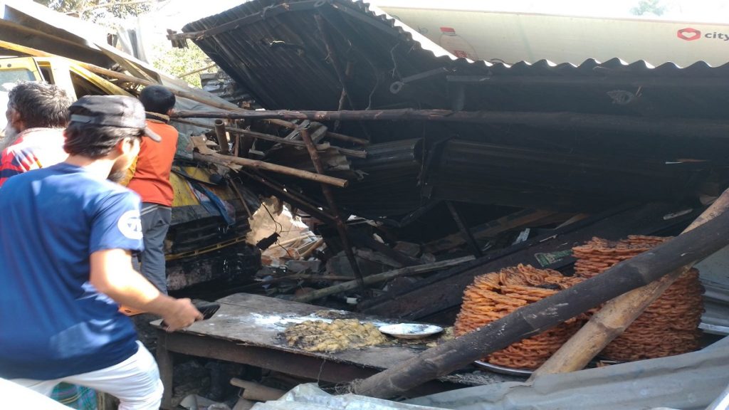 স্থানীয়রা জানান, শুক্রবার সকাল ৮টার দিকে যশোর থেকে সাতক্ষীরাগামী একটি কাভার্ডভ্যান যশোর-মণিরামপুর সড়কের ব্যাগারিতলা এলাকায় পৌঁছলে চালক নিয়ন্ত্রণ হারিয়ে ফেলেন। এ সময় কাভার্ডভ্যানটি রাস্তার পাশে হোটেল, চায়ের দোকানসহ অন্তত দশটি দোকানে আঘাত করে। এতে চায়ের দোকানে ও হোটেলে নাস্তা করতে আসা এবং পথচারীসহ পাঁচজনের মৃত্যু হয়।