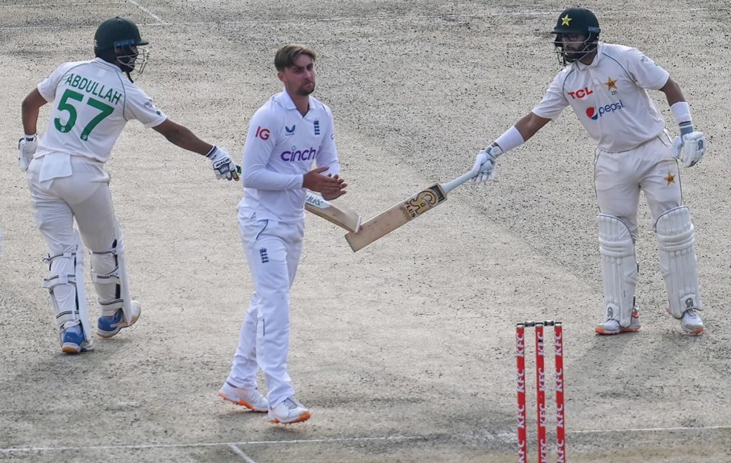 জবাবে পাকিস্তান প্রথম ইনিংসে ব্যাট করতে নেমে ৫১ ওভার খেলেছে। ইংল্যান্ডের বোলাররা অনেক চেষ্টা করেও সারাদিনে একটা উইকেটও পাননি। দুই পাক ওপেনার আব্দুলাহ শফিক ও ইমাম উল হক সেঞ্চুরির দোরগড়ায় দাঁড়িয়ে দ্বিতীয় দিনের খেলা শেষে অপরাজিত অবস্থায় প্যাভিলিয়নে ফিরেছেন। শফিক ৮৯ ও ইমাম ৯০ রানে ব্যাট করছেন।