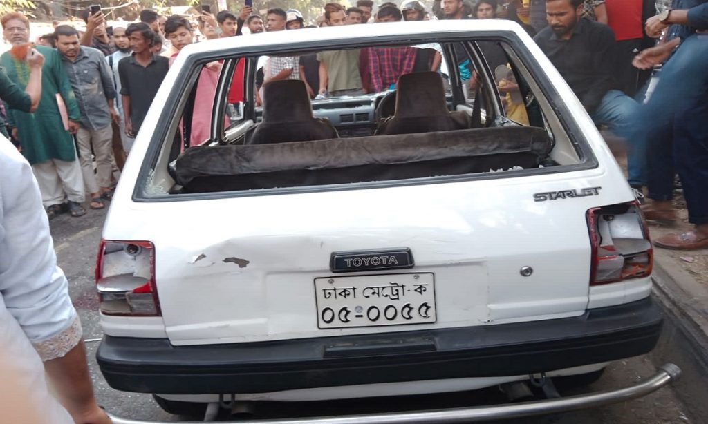 প্রত্যক্ষদর্শী ঢাবি শিক্ষার্থী মীর সাফায়েত হোসেন বলেন, আমরা টিএসসি এলাকায় আড্ডা দিচ্ছিলাম। দেখলাম একটি প্রাইভেটকার একজন নারীকে টানতে টানতে নীলক্ষেত এলাকার দিকে নিয়ে যাচ্ছে। পরে আমরা কয়েকজন পেছন পেছনে দৌড়ে নীলক্ষেত মোড় এলাকা থেকে তাকে আহত অবস্থায় ঢাকা মেডিকেলে নিয়ে আসি। আহত প্রাইভেটকার চালককেও ঢাকা মেডিকেলে নিয়ে আসা হয়েছে। জরুরি বিভাগের তার চিকিৎসা চলছে। আমরা জানতে পেরেছি আহত ওই প্রাইভেটকার চালক ঢাবির আইআর ডিপার্টমেন্টের সহযোগী অধ্যাপক ছিলেন।