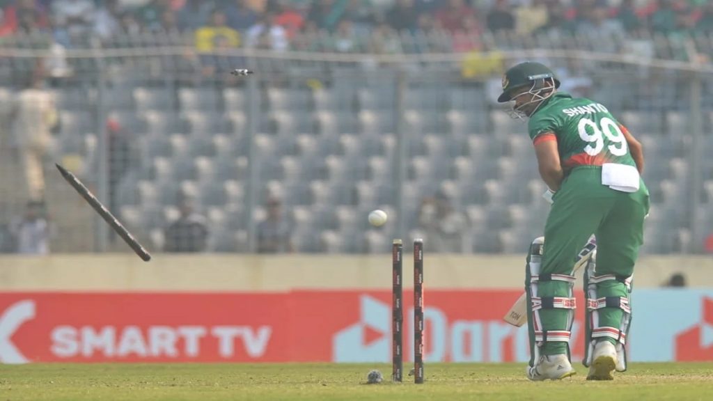 তারপরেই উমরানের গতির কাছে নিজের উইকেট বিলিয়ে সাজঘরে ফেরেন শান্ত। ৩৫ বলে ২১ রান করে আউট হন তিনি।