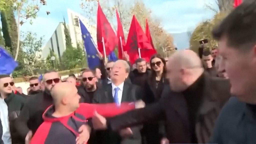 সরকার বিরোধী র্যালি নিয়ে যাওয়ার সময় ঘুষি খেলেন আলবেনিয়ার বিরোধী নেতা সালি বারিশা। মঙ্গলবার (৬ ডিসেম্বর) দেশটির রাজধানী তিরানায় হয় এমন কাণ্ড। খবর এপির।