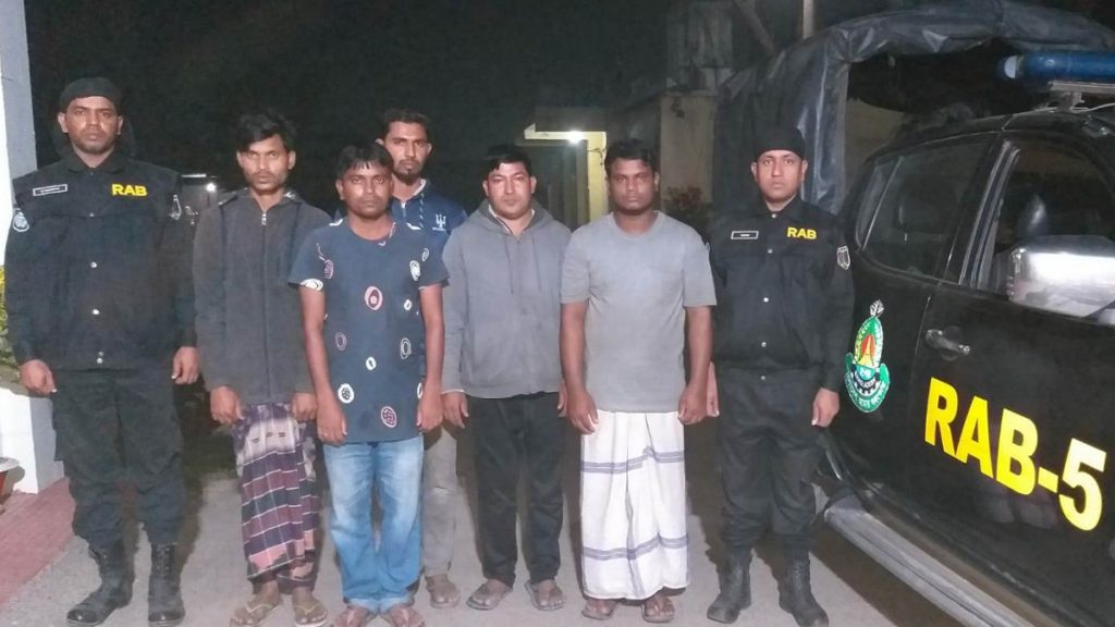 আটককৃতরা ব্যক্তিরা হলো- খাজুরা গ্রামের মনিরুল ইসলাম, কুচকুড়ি গ্রামের শাহিন আলম, ঠাকুর লক্ষ্মীকুল গ্রামের মোস্তাফিজুর রহমান বিদ্যুৎ ও চাঁদপুর গ্রামের বিদ্যুৎ কুমার এবং আল আমিন।