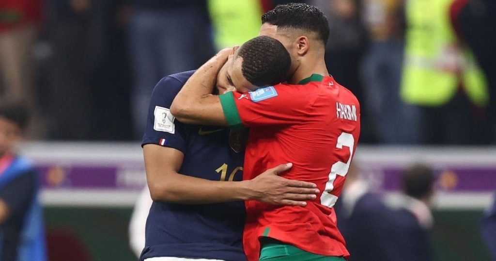 পরাজয়ের পরেই স্বাভাবিকভাবেই হাকিমির চোখেমুখে ছিল বিদায়ের কষ্ট। সেই বিদায়ের কষ্ট কিছুটা হলেও লাঘব করতে ম্যাচ শেষে হাকিমিকে সান্ত্বনা দিতে দেখা গেছে এমবাপ্পেকে।