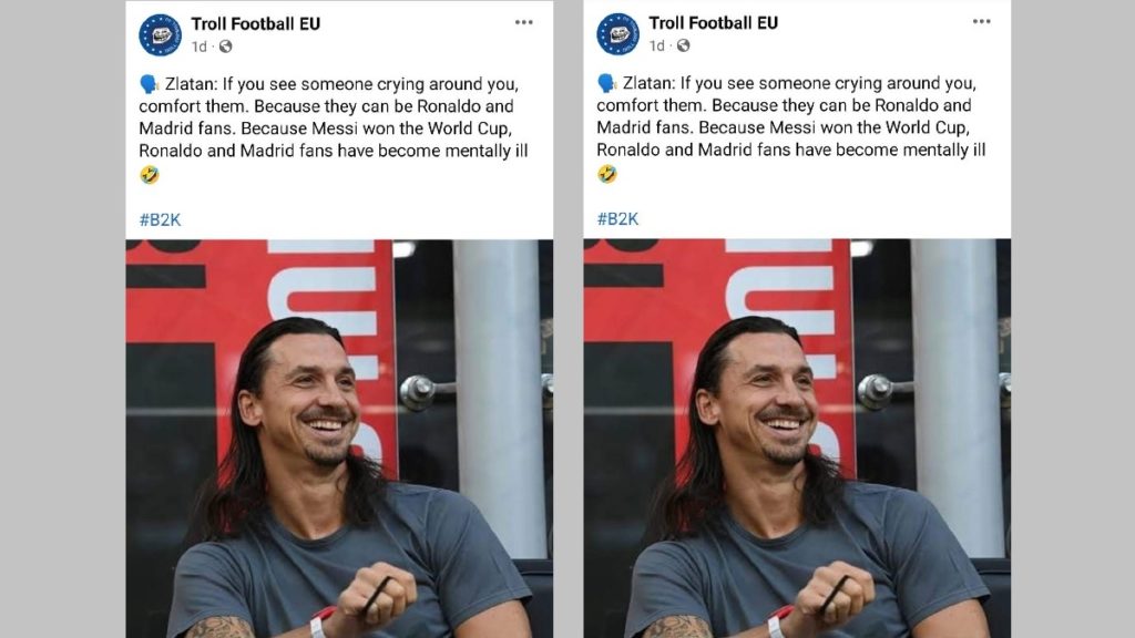 এরপরই নানা আলোচনা-সমালোচনা-রিউমার যেমন ছড়িয়ে পড়ছে, তেমনি ট্রলও করা হচ্ছে। এরমধ্যে যেমন আলবিসেলেস্তেদের জয়ের পরই সুইডিশ তারকা জ্লাতান ইব্রাহিমোভিচের বরাতে একটি ট্রল ছড়িয়ে পড়েছে। যেখানে বলা হয়, মেসির বিশ্বকাপ জয়ে সবাই খুশি হলেও রিয়াল মাদ্রিদ ও রোনালদো ভক্তরা এটা মেনে নিতে পারছে না। কারণ, তারা মানসিকভাবে অসুস্থ।