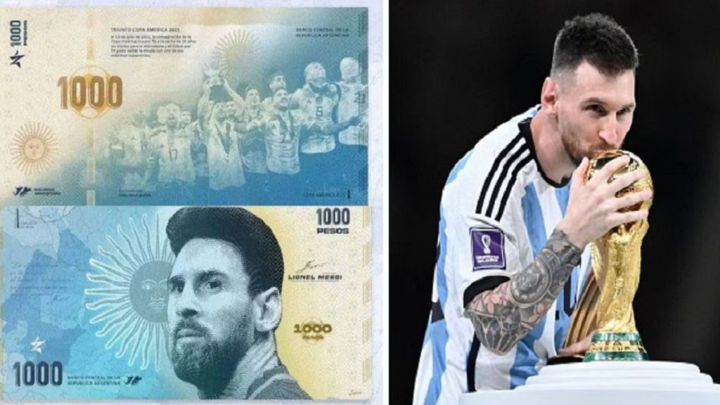এবার আর্জেন্টিনার মুদ্রায় দেখা যেতে পারে লিওনেল মেসির প্রতিকৃতি। এলএম টেনের অর্জনকে সম্মান জানিয়ে এমন প্রস্তাব দিয়েছে দেশটির অর্থমন্ত্রণালয়। প্রস্তাবিত নোটের সামনের অংশে মেসির প্রতিকৃতির পাশাপাশি অপর পৃষ্ঠে থাকতে পারে আলবিসেলেস্তাদের বিশ্ব জয়ের উদযাপন। সেই সাথে দেয়া হয়েছে রূপকথার কারিগর লিওনেল স্কালোনির নাম রাখার প্রস্তাবও।