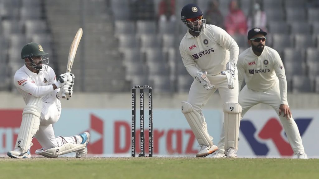 এর আগে, দলীয় ১৩ রানের মাথায় রবিচন্দন অশ্বিনের বলে লেগ বিফোরের ফাঁদে পড়ে ফেরেন ওপেনার নাজমুল হোসেন শান্ত। করেন মাত্র ৬ রান। তিন নম্বরে নামা মুমিনুল হক প্রথম ইনিংসে ৮৪ রান করলেও আজ ৫ রানের বেশি করতে পারেননি। মোহাম্মদ সিরাজের বলে রিশাভ পান্তের তালুবন্দি হন তিনি। পরে সাকিব এসে কিছুটা আশা দেখালেও ব্যক্তিগত ১৩ রানে উনাদকাতের বলে সহজ ক্যাচ তুলে দেন শুভমান গিলের হাতে। সাকিবের পর মুশফিকুর রহিমও হতাশ করেন। ৯ রান করে আক্সার প্যাটেলের এক ডেলিভারিতে এলবিডব্লিউয়ের শিকার হয়ে ফিরে যান সাজঘরে।