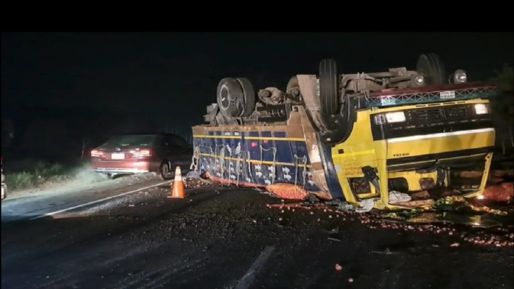 জানা যায়, ফরিদপুর থেকে পেয়াজ ভর্তি করে একটি ট্রাক চট্টগ্রাম যাচ্ছিল। শনিবার (২৪ ডিসেম্বর) রাত আনুমানিক ১২টার দিক ট্রাকটি ঢাকা-খুলনা এক্সপ্রেসওয়ের পদ্মাসেতু সংলগ্ন শরীয়তপুর জেলার জাজিরা উপজেলার নাওডোবা ইউনিয়নের তস্তারকান্দি এলাকায় পৌঁছলে ট্রাকের চাকা ফেটে মহাসড়কের ওপর উল্টে যায়। এতে ট্রাকের চালক নিজাম (২২) ও হেলপার আহত হয়। পদ্মাসেতু থানা পুলিশের একটি দল তাৎক্ষনিক ঘটনাস্থলে পৌঁছে আহত চালক ও হেলপারকে উদ্ধার করে হাসপাতালে প্রেরণ করে। খবর পেয়ে পরে শিবচর হাইওয়ে থানা পুলিশের একটি দল ঘটনাস্থলে পৌঁছে মধ্যরাতে রেকার দিয়ে দুর্ঘটনা কবলিত ট্রাকটি উদ্ধার করে। এসময় কয়েক ঘণ্টার জন্য মহাসড়কে যান চলাচল বিঘ্নিত হয়।
