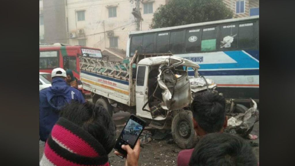 পুলিশ ও স্থানীয়রা জানান, সকাল সাড়ে ৭টার দিকে কিশোরগঞ্জগামী একটি মালবাহী পিকআপ ও ঢাকাগামী ওয়াসিফ এক্সপ্রেস নামের একটি যাত্রীবাহী বাসের মুখোমুখি সংঘর্ষ হয়। এতে ঘটনাস্থলেই পিকআপের চালকের মৃত্যু হয়। এ সময় আহত হন হেলপারও।