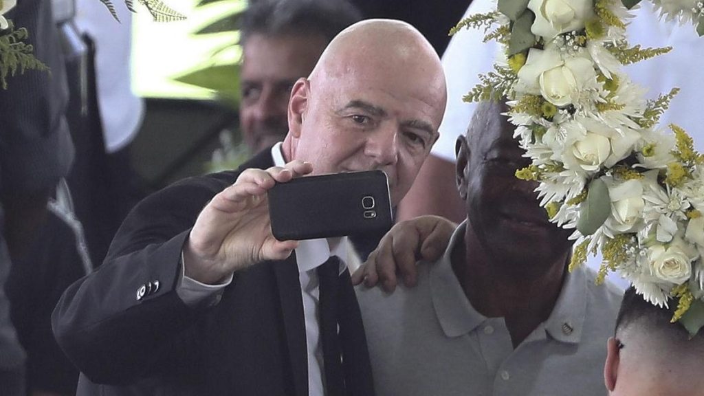 পেলের মরদেহ বহনকারী উন্মুক্ত কফিনের পাশে হাসিমুখে সেলফি তুলে ব্যাপক সমালোনার জন্ম দিলেন ফিফা সভাপতি জিয়ান্নি ইনফান্তিনো। পেলের শেষকৃত্যে গিয়ে কফিনের পাশে দাঁড়িয়েই এসময় হাসিমুখে ভক্তদের ছবি সাথে সেলফিবন্দি হতে দেখা গেছে তাকে। এমন শোকাবহ পরিবেশে ইনফান্তিনোর সেলফি তোলা নিয়ে আন্তর্জাতিক গণমাধ্যমগুলোতে চলছে তীব্র সমালোচনা।