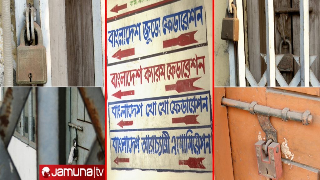 হকি স্টেডিয়ামের দোতালায় ১৮ টির বেশি ফেডারেশনের কয়েকটি ছাড়া বেশিরভাগই পাওয়া গেছে তালা ঝুলানো অবস্থায়। ক্যামেরার সামনে কথা বলতে না চাওয়া স্টেডিয়াম সংশ্লিষ্ট অনেকেই জানিয়েছেন, মাসের পর মাস পেরোলেও খোলাই হয় না অনেক ফেডারেশনের তালা! চোখ বন্ধ করে থাকে ক্রীড়া পরিষদও; যেন তাদের কোনো দায়ই নেই!