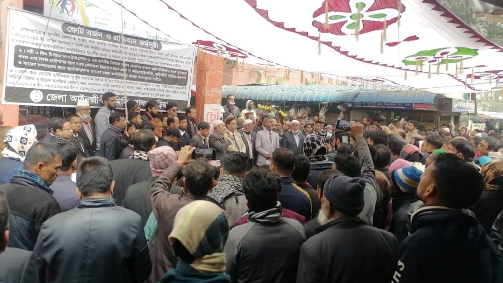 বিভিন্ন দাবিতে আগামী ৩ দিন ব্রাহ্মণবাড়িয়ার আদালত বর্জনের ঘোষণা দিয়েছে জেলা আইনজীবী সমিতি। বৃহস্পতিবার (৫ জানুয়ারি) থেকে এই কর্মসূচি শুরু করেছে আইনজীবীরা। চলবে আগামী ৯ জানুয়ারি পর্যন্ত। কর্মসূচির কারণে এজলাসে আইনজীবী না থাকায় দুর্ভোগে পড়েছেন বিচার প্রার্থীরা।