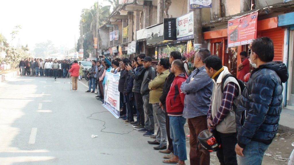 মসজিদ উন্নয়নের বরাদ্দের টাকা আত্মসাতের সংবাদ প্রকাশ করায় ঢাকাপোস্টের সম্পাদক মহিউদ্দিন সরকার ও গাইবান্ধা প্রতিনিধি রিপন আকন্দের বিরুদ্ধে হয়রানিমূলক মামলার প্রতিবাদে মানববন্ধন করেছেন গাইবান্ধার সাংবাদিকরা।