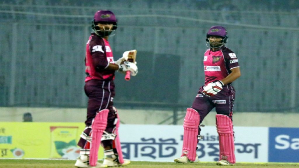 টস হেরে ব্যাট করতে নেমে অবশ্য শুরুতেই মোহাম্মদ হ্যারিসের উইকেট হারায় সিলেট স্ট্রাইকার্স। ৬ রান করে তাসকিনের বলে মিথুনের হাতে ক্যাচ দিয়ে ফেরেন হ্যারিস।