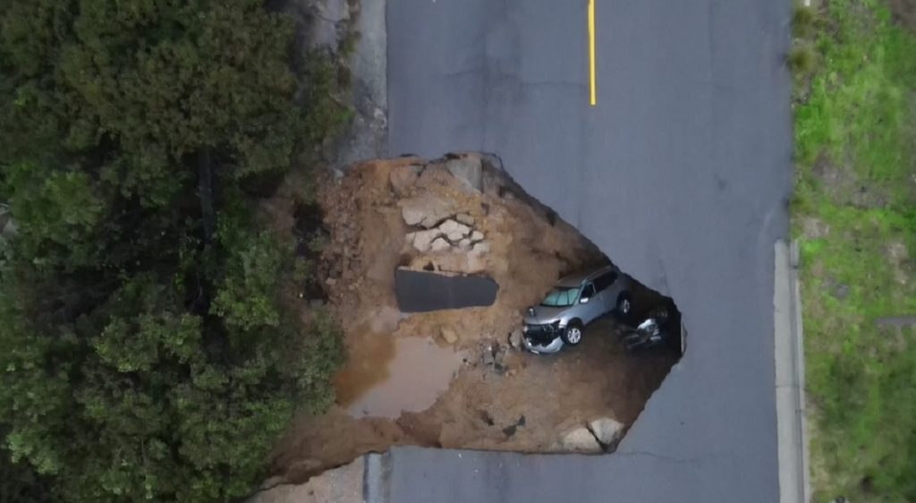 বন্যার পানির তোড়ে দানবীয় গর্ত হলো মহাসড়কে। মঙ্গলবার বিরল এই দৃশ্য দেখা গেলো যুক্তরাষ্ট্রের লস অ্যাঞ্জেলসে। খবর বার্তা সংস্থা এপির।