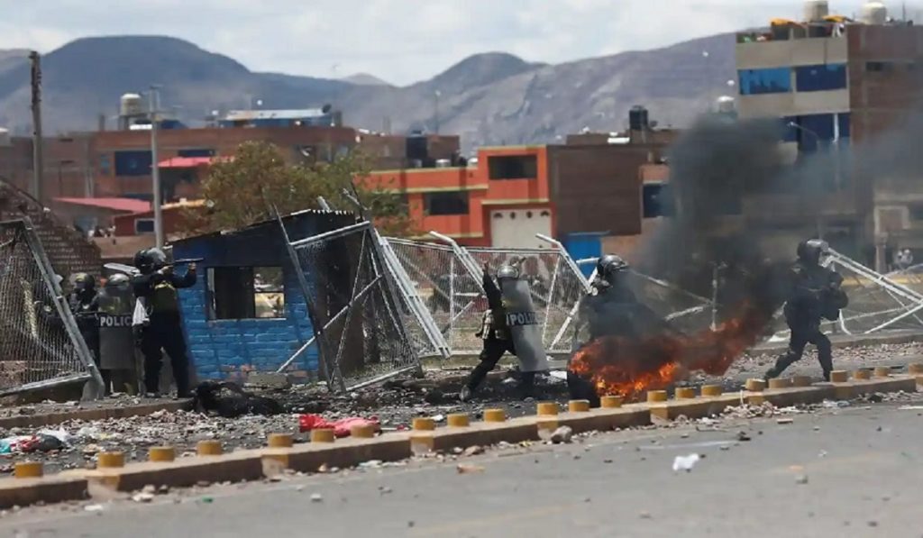 পেরুতে সরকার বিরোধী আন্দোলন আবারও তীব্র আকার ধারণ করেছে। আন্দোলনকারীদের নিয়ন্ত্রণে আইনশৃঙ্খলা রক্ষাকারী বাহিনীর সংঘর্ষে মঙ্গলবার (১০ জানুয়ারি) রাতে দেশটিতে প্রাণ হারান কমপক্ষে ১৭ জন। এবার রাত্রিকালীন কারফিউ জারি করা হয়েছে দেশটিতে। খবর দ্য গার্ডিয়ানের।