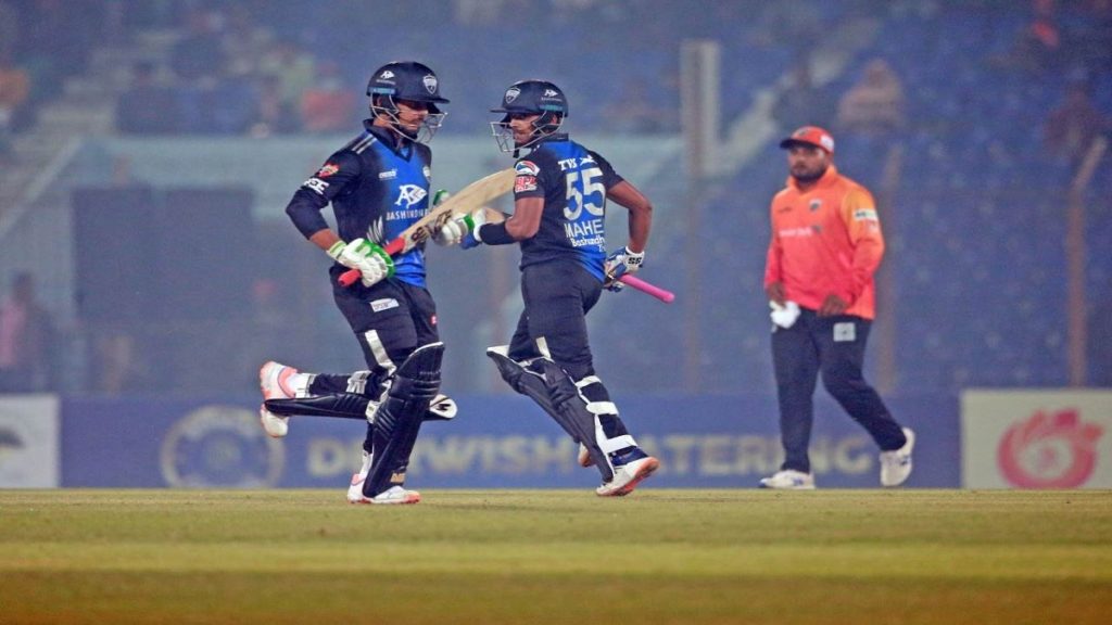 এরপর ক্রিজে আসেন ৪১ বছর বয়সী শোয়েব মালিক। প্রথমে মোহাম্মদ নাইম আর পরে নুরুল হাসান সোহানকে সাথে নিয়ে দলের জয়ের ভিত গড়েন তিনি। নাইমের ব্যাট থেকে আসে ২১ আর সোহান করেন ১০ রান।