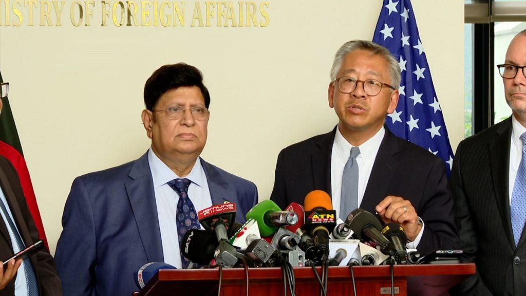 রোববার (১৫ জানুয়ারি) সকালে পররাষ্ট্র মন্ত্রণালয়ে যান যুক্তরাষ্ট্রের সহকারী পররাষ্ট্র মন্ত্রী ডোনাল্ড লু। সেখানে পররাষ্ট্র মন্ত্রী ড. আব্দুল মোমেন ও প্রতিমন্ত্রী শাহরিয়ার আলমের সাথে সাক্ষাৎ করেন তিনি। আনুষ্ঠানিক দ্বিপাক্ষিক বৈঠক হয় পররাষ্ট্র সচিব মাসুদ বিন মোমেনের সাথে। এ সময় দ্বিপাক্ষিক ইস্যু ছাড়াও মানবাধিকার বিশেষ করে র্যাবের নিষেধাজ্ঞা প্রত্যাহার, আগামী নির্বাচন, জিএসপি পূনর্বহালসহ নানা ইস্যুতে আলোচনা করেন তারা।