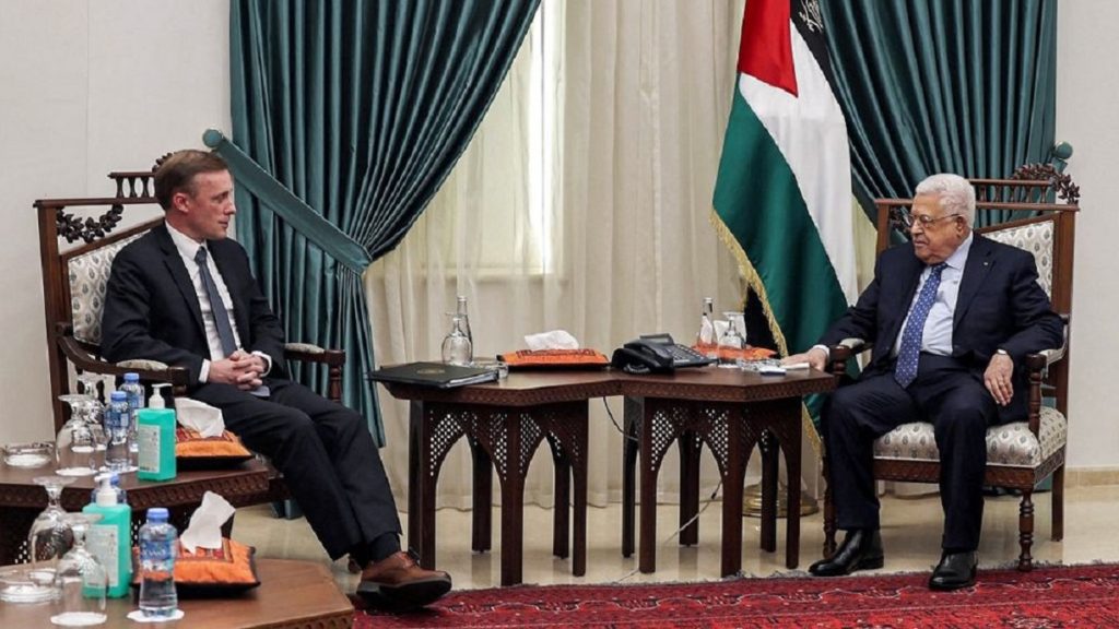ফিলিস্তিনি প্রেসিডেন্সিয়াল দফতরের পক্ষ থেকে এ নিয়ে একটি বিবৃতি প্রকাশ করা হয়েছে। সেখানে জানানো হয়, ইসরায়েলের নতুন কট্টর ডানপন্থী সরকারের ব্যাপারে জ্যাক সুলিভানের কথা হয়েছে। বৈঠকে ফিলিস্তিনিদের ওপর আগ্রাসন ও নিপীড়ন বন্ধে অবিলম্বে মার্কিন হস্তক্ষেপ চেয়েছেন ফিলিস্তিনি প্রেসিডেন্ট।